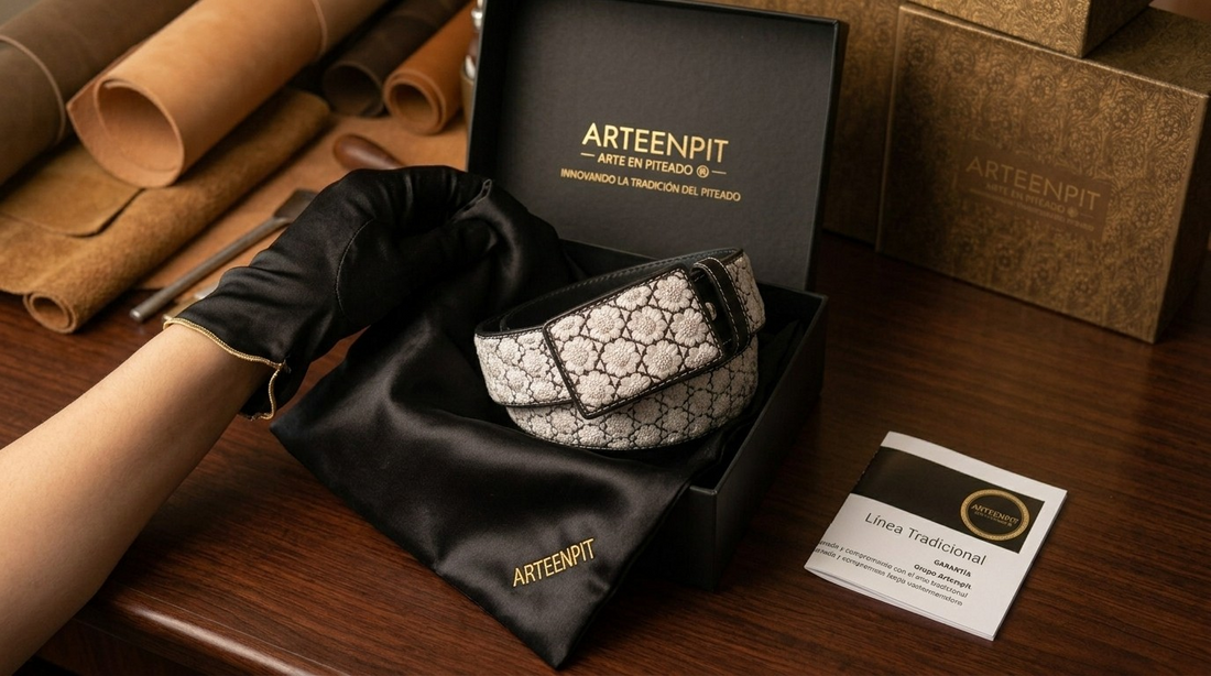 Cinturon Artesanal Piteado modelo - mil aros Silver gold