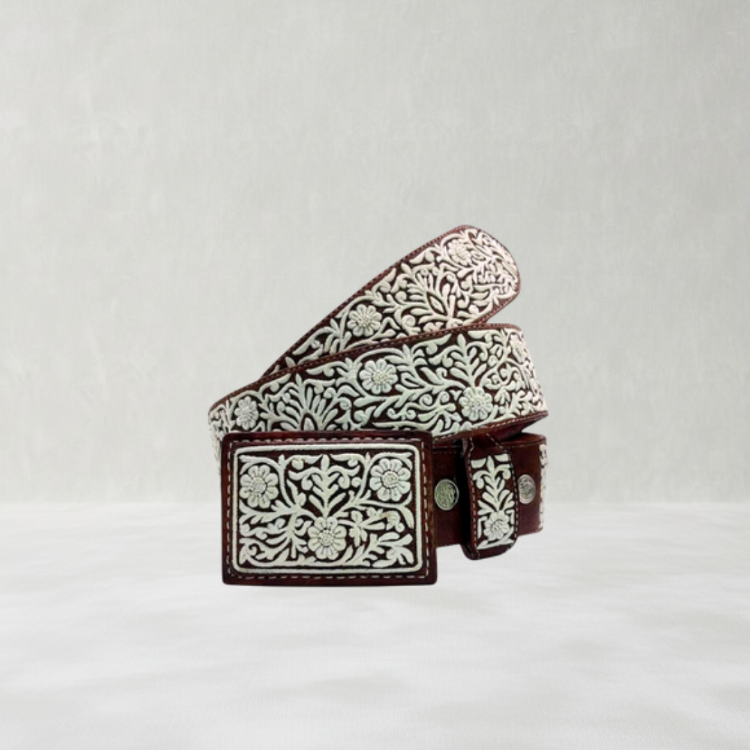 Cinturón Artesanal Piteado - Modelo Rameado con flores