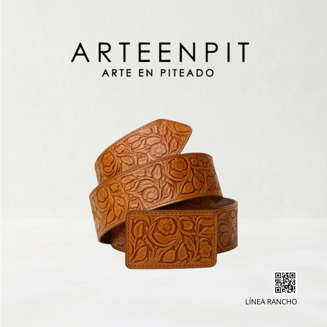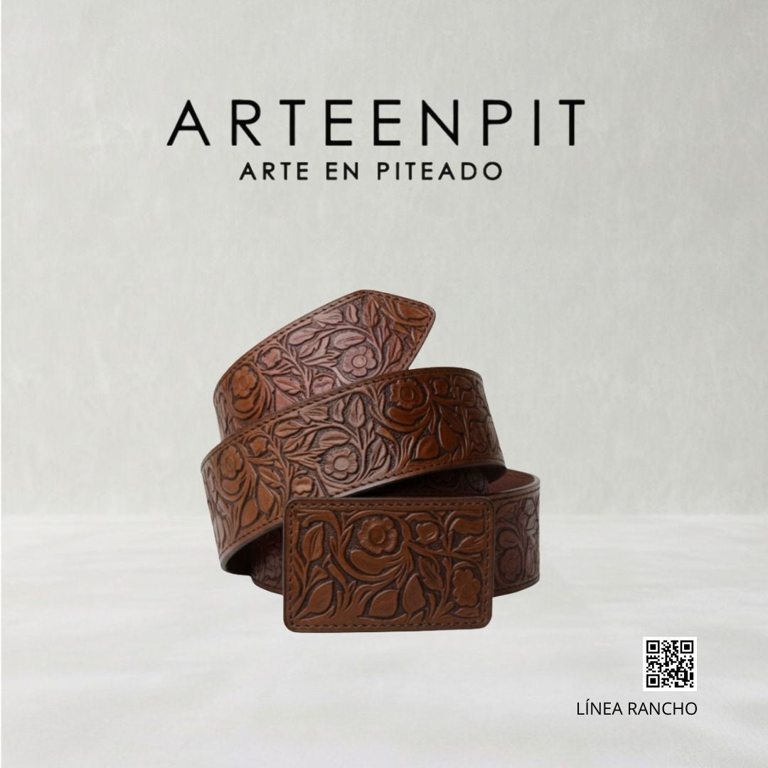 Cinturón de cuero cincelado a mano - modelo Rameado