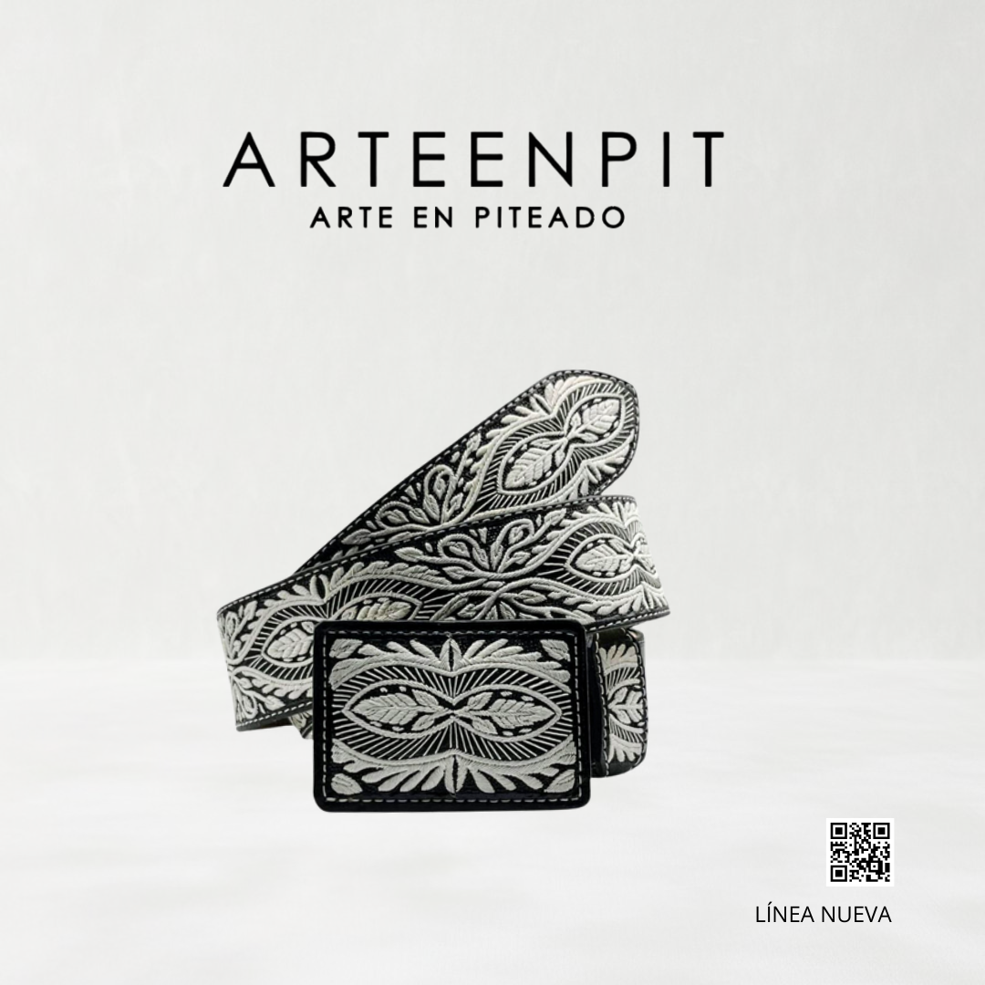 2" belt in genuine beef leather, embroidered with original fine pita maguey.