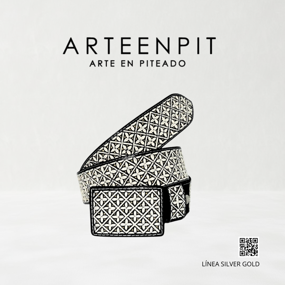Cinturón Artesanal Piteado - Modelo Flor cruci Gold